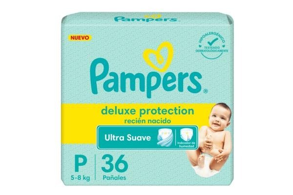 > P (Pequeño): x 36 pañales. Peso de 5 kg a 8 kg.